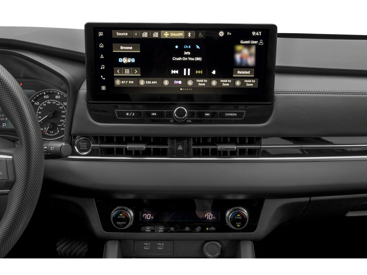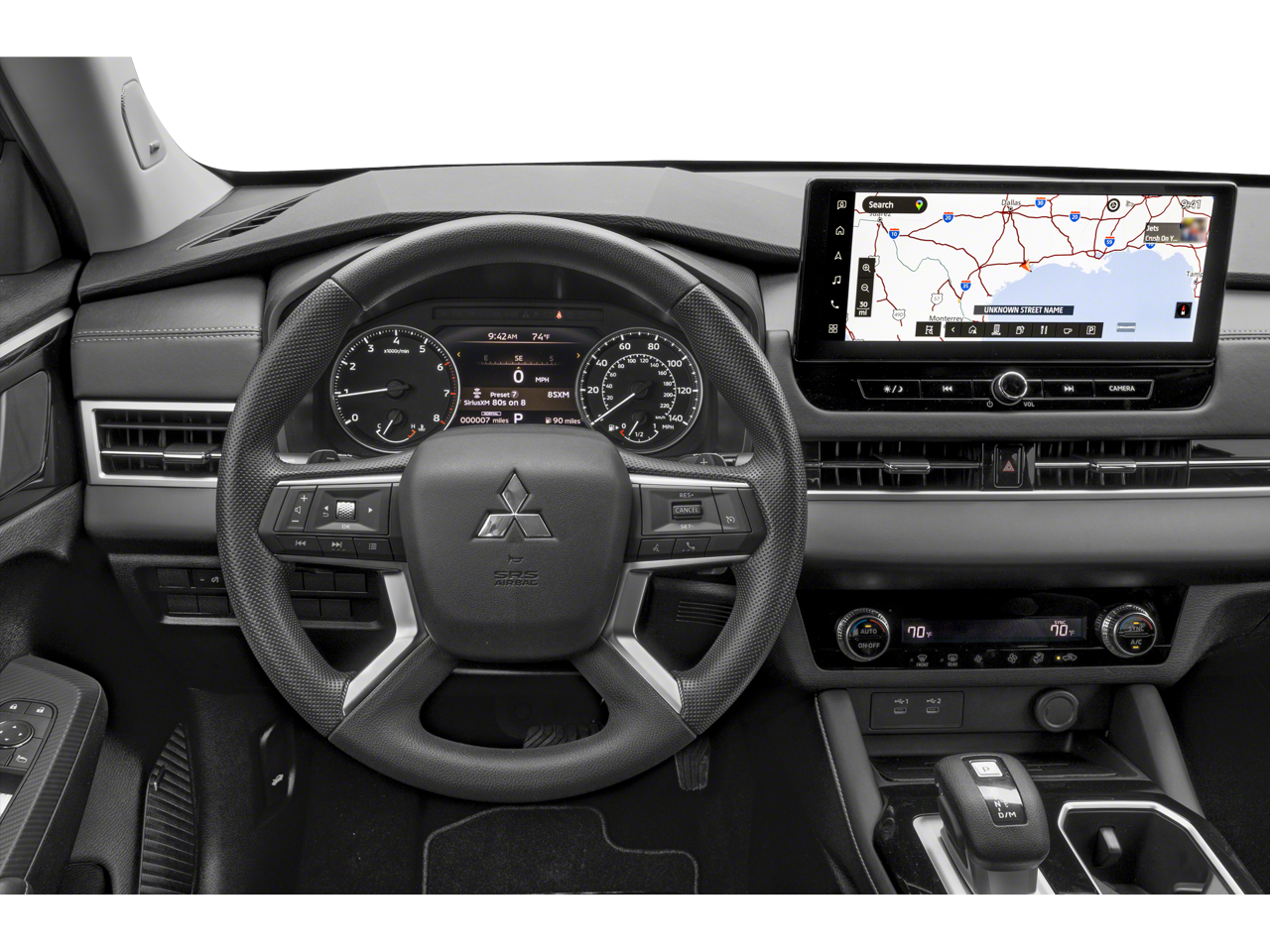 - Radio: AM/FM 12.3" Navigation w/Smartphone-Link -inc: wireless Apple CarPlay and Google Android Auto, Mitsubishi Connect w/5-year safeguard trial and 1-year remote services trial (mobile app enrollment required), Bluetooth® wireless technology, steering wheel controls for phone, audio and voice recognition, 2 front USB-C ports,SXM 360L audio w/90-day SXM all access subscription and SXM traffic & travel link w/90-day subscription and dynamic sound Yamaha premium system w/8 speakers