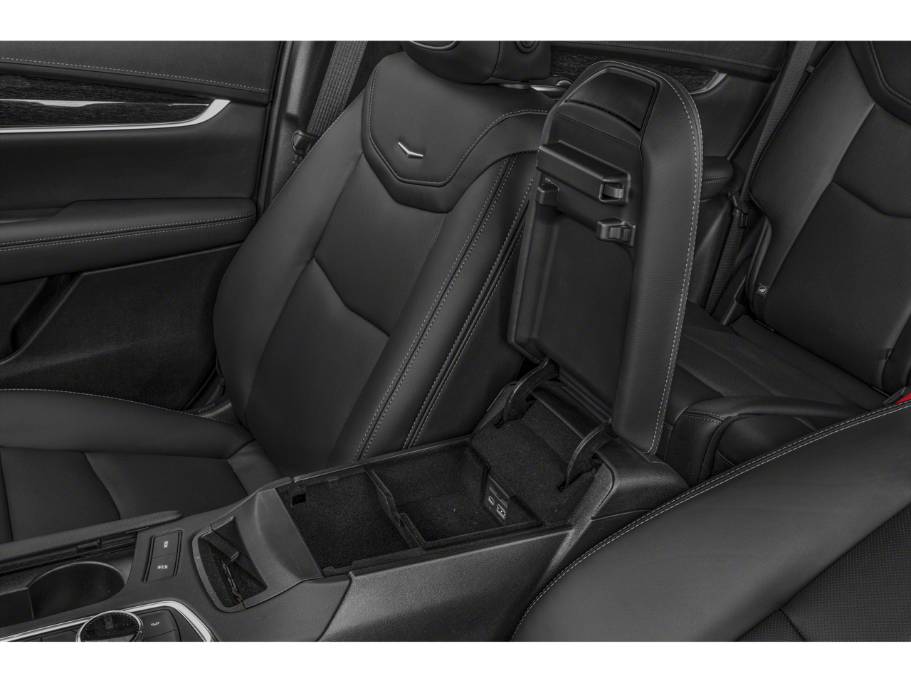 - Opens or closes when the system senses the key fob and the driver extends their foot under the left-hand side of the rear bumper over an image of the Cadillac Crest projected under the vehicle